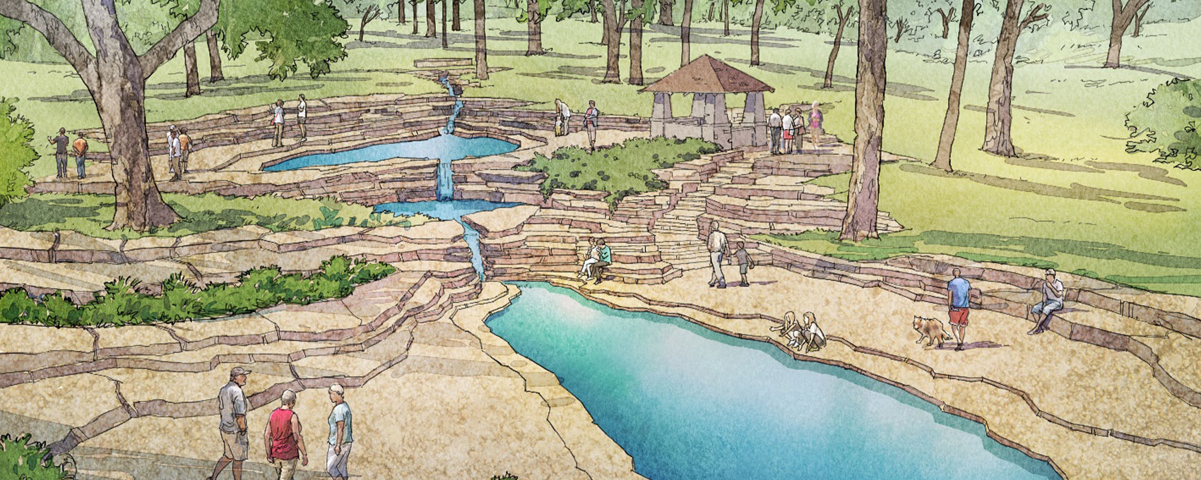 The Allegheny County Parks Foundation and Allegheny County plan to continue restoring Riis’ architecture and legacy within South Park by partnering on the upcoming restoration of Edgebrook Shelter, another oven shelter with a stone bridge, along with the development of the Paul Riis Trail. The restoration of the Cascades, a water feature also built in 1931, was completed by the Parks Foundation and Allegheny County in 2022 and has since become once again a not-to-miss attraction within South Park.